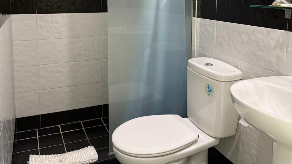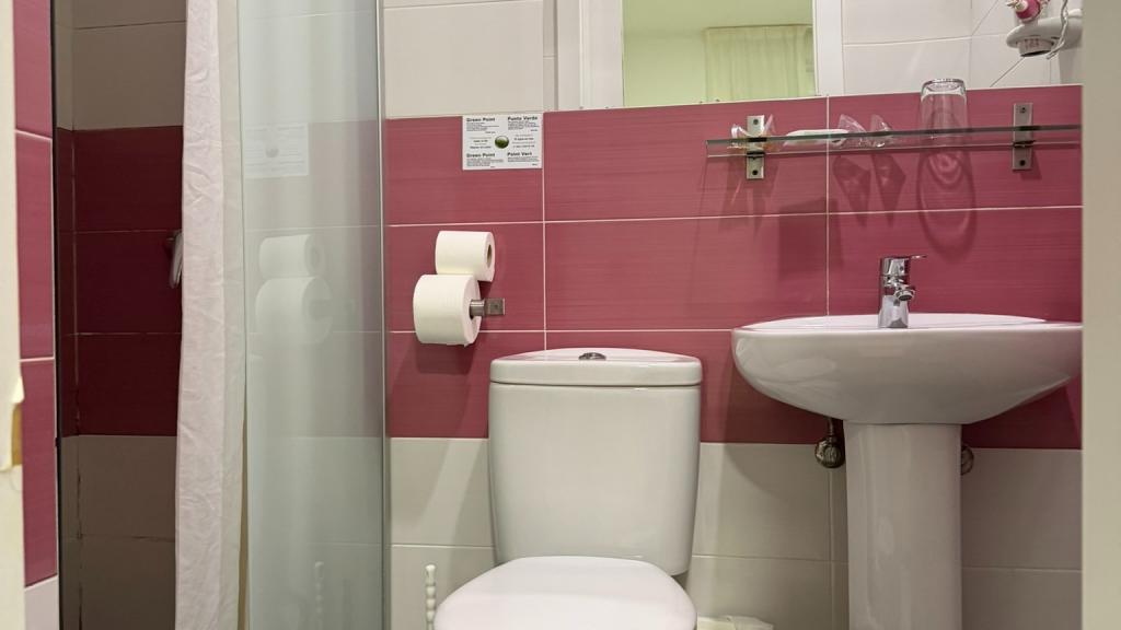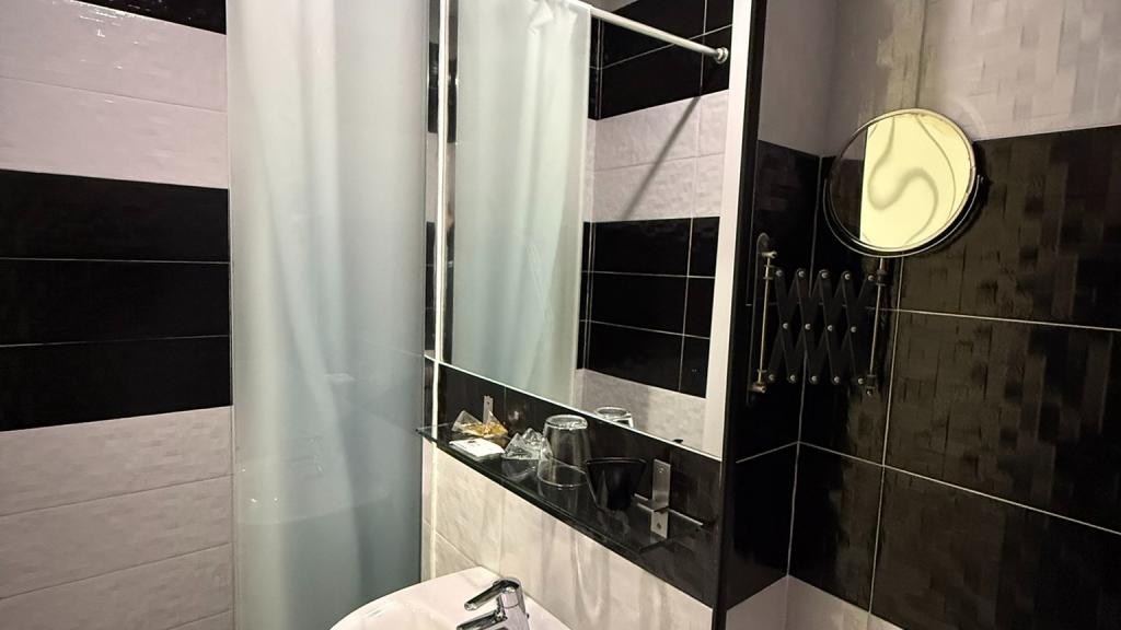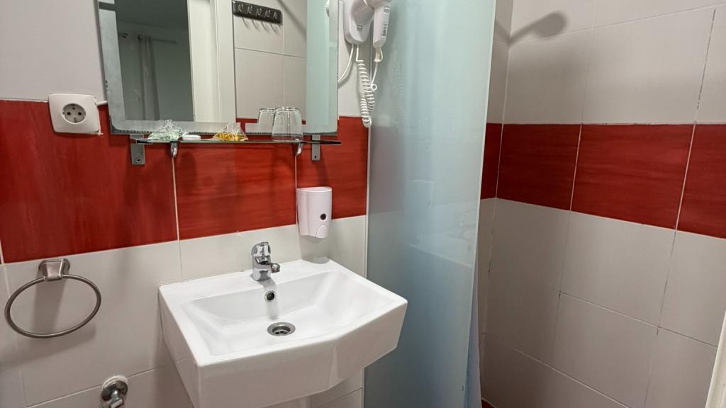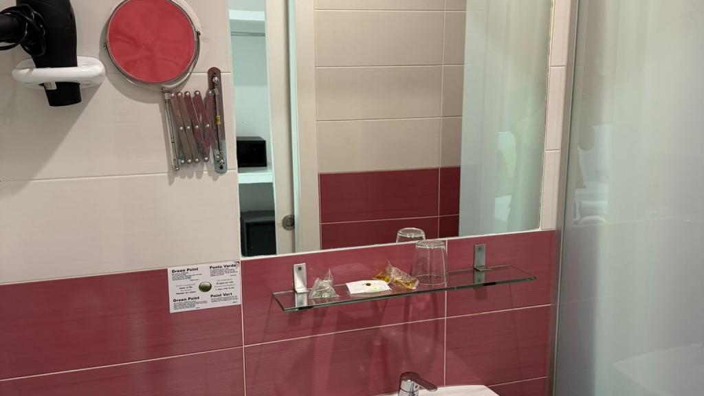 Haitacion bonita. Baño pequeño pero suficiente. Nada de ruidos a pesar de la situacion Personal amable